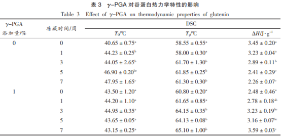 轉(zhuǎn)性溫度(Tp)和焓變(ΔH)是蛋白質(zhì)在熱變性過程中的基本參數(shù),蛋白質(zhì)試品熱學(xué)特點如表3所顯示,因麥子蛋白質(zhì)對熱敏感較低,故只有見到較小的消化吸收最高值。得知隨凍藏時間提升,谷蛋白的轉(zhuǎn)性起止溫度明顯升高六.3℃,其轉(zhuǎn)性溫度Tp也由58.5℃明顯上升至61.3℃,說明其超低溫可靠性上升,這很有可能與凍藏造成 其親水性官能團的曝露相關(guān),與此同時其熱露點溫度明顯減少,說明蛋白質(zhì)井然有序水平減少,與谷蛋白二級結(jié)構(gòu)的檢測結(jié)果相一致。Wang等實驗中面條蛋白質(zhì)轉(zhuǎn)性溫度隨凍藏時間增加而減少,與此同時焓變有下降趨勢,比照結(jié)果推斷谷蛋白對凍藏期內(nèi)的熱轉(zhuǎn)性溫度的提高具有關(guān)鍵功效。而γ-PGA組合理遏制了凍藏造成 的轉(zhuǎn)性起止溫度上升,凍藏7星期過后促使轉(zhuǎn)性溫度Tp擴大至65℃,較空缺組提高4℃,并發(fā)覺其熱露點溫度并沒有隨凍藏時間增加而減少,這可能是γ-PGA合理遏制了谷蛋白互聯(lián)網(wǎng)的劣變,進而緩解了熱露點溫度的減少。