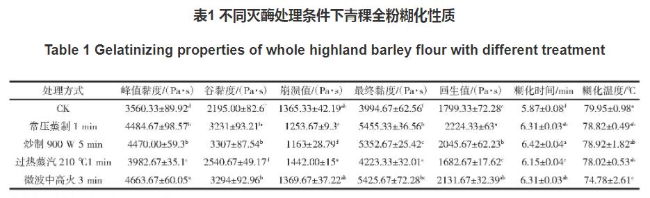 2.2.1不一樣解決對(duì)青稞全粉糊化特點(diǎn)的危害