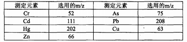 1.2標(biāo)液和實驗試劑 砷 、汞、鉻 、鉛 、鎘 、銅 、鋅規(guī)范貯備液 ;Re內(nèi)標(biāo)水溶液 ; HNO (優(yōu)級純);超純水系統(tǒng) (電阻 >18M Q·cm)。