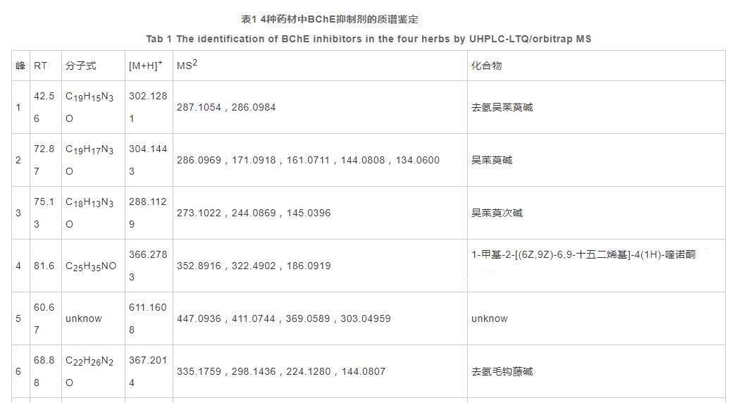 本科學(xué)研究創(chuàng)建了一種UPLC-DAD-BCD線上統(tǒng)計(jì)分析方法,用以迅速挑選吳茱萸、鉤藤、玄參和山豆根(苗)4種藥材中的BChE緩聚劑,發(fā)覺12個成份具備BChE抑止活力,根據(jù)UHPLC-LTQ/Orbitrap方式評定出8種活力成份,如:去氫吳茱萸堿、吳茱萸堿、吳茱萸次堿、1-羥基-2–4(1H)-喹諾酮、去氫毛鉤藤堿、毛鉤藤堿、苦參堿和氧化苦參堿。研究表明,創(chuàng)建的儀器設(shè)備聯(lián)用系統(tǒng)軟件平穩(wěn)、線上統(tǒng)計(jì)分析方法靈巧,可以普遍用以中藥材繁雜機(jī)質(zhì)中微生物效用成份的迅速篩選。