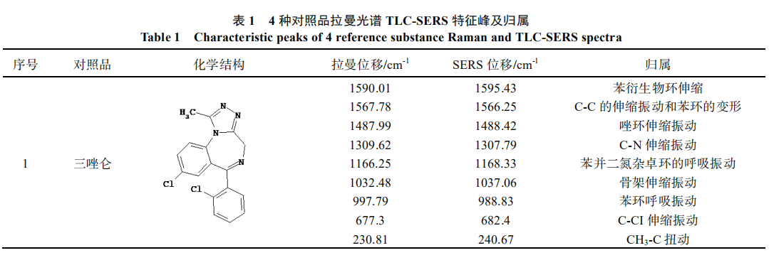 結(jié)果顯示,50%的凡士林有較高的提升作用和較高的可靠性;ZHU等選用薄層色譜法分離出來天然性膳食補充劑中造假藥品,隨后運用表層提高拉曼光譜分析法對TLC板上的少量化學(xué)物質(zhì)開展明確辨別,結(jié)果顯示TLC-SERS能夠合理地分開和檢驗4種用以造假的化合物,針對當(dāng)場判定挑選造假的物質(zhì)具備優(yōu)良的應(yīng)用前景。