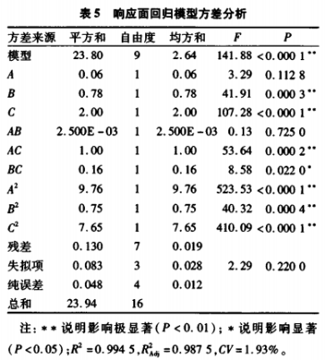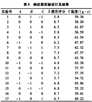 由表5得知,該實體模型有極明顯危害,失擬項P 為0.220 0,表明該實體模型失擬不明顯,線性擬合優(yōu)良。對 數(shù)學分析模型開展廣泛性剖析,可得到各成分的適宜添 補加為番茄醬30.05%、大豆蛋白粉0.83%、糖槳 1.08%,在這里前提下,感觀得分的估計值是8.71,黏 數(shù)為61.09 g·S。參照具體情況取適宜加上量為花 生醬30.00%、大豆蛋白粉0.8%、糖槳1%,在這里標準 下做認證試驗,獲得的商品感觀得分為8.80,粘度 為62.23 g·S,結(jié)果與估計值基本一致,證實實體模型與 具體情況線性擬合狀況優(yōu)良,具備非常的實際意義。由 此獲得白芝麻番茄醬各化學物質(zhì)最佳加上量為番茄醬 30%、大豆蛋白粉0.80%、糖槳1%。