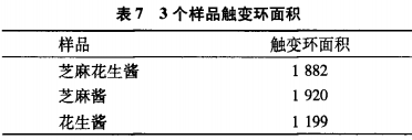 由表7能夠看得出,3個試品觸變環(huán)總面積尺寸為 麻醬>白芝麻番茄醬>番茄醬。比較之下番茄醬受 到外力的作用后,管理體系毀壞水平最少,修復到最初的狀態(tài) 常用時間最短,流變學可靠性最好;白芝麻番茄醬觸變 環(huán)總面積略低于麻醬,表明花生仁、大豆蛋白粉、糖槳的添加沒有擴大管理體系的可壓縮性,與此同時也可看得出,與麻醬對比,白芝麻番茄醬較易恢復原先的構(gòu)造,且口味更為細嫩溫和。