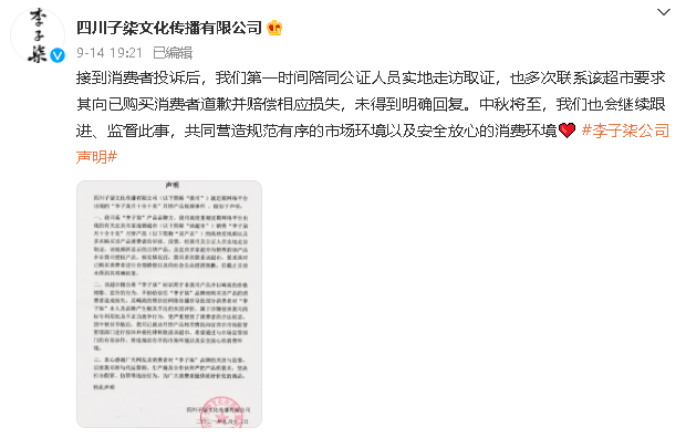 食用添加劑網(wǎng)訊 9月14日,對(duì)于最近互聯(lián)網(wǎng)平臺(tái)發(fā)生的“李子柒月十全十美”中秋月餅宣傳片制作事情,四川子柒文化傳媒有限責(zé)任公司公布申明。申明稱,四川子柒文化傳媒有限責(zé)任公司系“李子柒”商品知名品牌方,企業(yè)十分重視最近互聯(lián)網(wǎng)平臺(tái)發(fā)生的相關(guān)樂山市某超市連鎖店(下稱“該商場” )市場銷售“李子柒月十全十美”中秋月餅商品(下稱“該商品” )的高關(guān)注度視頻及其多位選購該商品顧客的檢舉、意見反饋。經(jīng)企業(yè)及公證員現(xiàn)場走訪調(diào)查調(diào)查取證,該視頻所表明的中秋月餅商品、及宜賓市好幾家商場內(nèi)市場銷售的該商品并不是四川子柒文化傳媒公司受權(quán)商品。核查情形后,企業(yè)數(shù)次聯(lián)絡(luò)該商場,規(guī)定其對(duì)已選購顧客完成有效賠付及其向廣大群眾回應(yīng)道歉,但到目前為止未獲得其確立回應(yīng)。