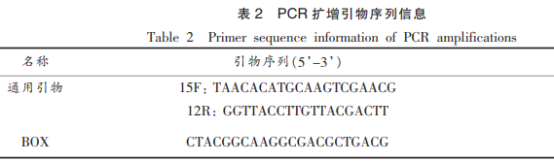 以病菌基因DNA為模版,參照Silva等的方式 ,運(yùn)用設(shè)計(jì)方案的BOX引物設(shè)計(jì)(引物設(shè)計(jì)編碼序列見表2)開展rep-PCR擴(kuò)增。待增加進(jìn)行后,將PCR物質(zhì)開展1.5%的瓊脂糖電泳電泳原理并在UV燈下觀查電泳原理結(jié)果。