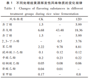 米酒的口味成份比較豐富,包含醛類、脂類、堿類、代烴及羰基化合物等。表1選擇了幾類具備象征性的醇脂類化學(xué)物質(zhì)開(kāi)展定性研究較為,以揮發(fā)物口味成分的總成分做為1,各成份成分為該成份與總成分的峰總面積比率。當(dāng)加上OTC酶后,米酒發(fā)醇商品中的首要口味成分構(gòu)成如表1所顯示,在其中苯乙醇和異戊醇的成分較高,苯乙醇具備香甜的玫瑰花香,是一種主要的口味化學(xué)物質(zhì)。苯乙醇是由L-苯丙氨酸轉(zhuǎn)換而成,關(guān)鍵根據(jù)酵母菌的氨基酸代謝或是糖原的生成。從表格中還可以看得出,對(duì)幾個(gè)具體的醛類,實(shí)驗(yàn)組的相應(yīng)成分均大于對(duì)照實(shí)驗(yàn),且實(shí)驗(yàn)組12D具備更優(yōu)良的口味特點(diǎn)。