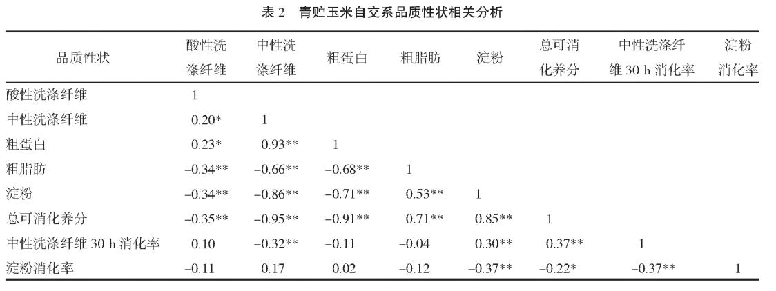 2.1 青儲玉米自交系質(zhì)量特性敘述與有關(guān)剖析