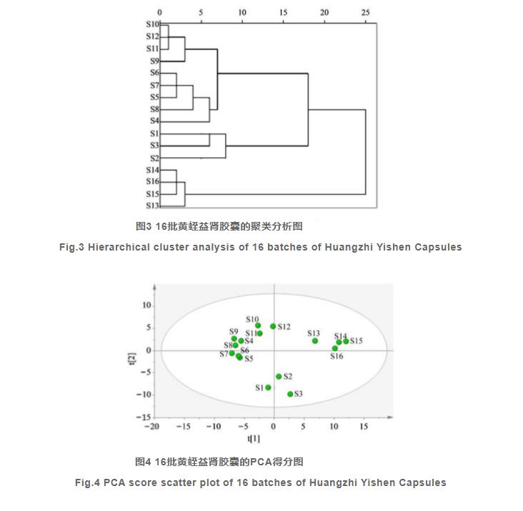 本科學研究創(chuàng)建了黃蛭益腎膠襄的指紋圖譜,16批試品中明確24個一共有峰,根據(jù)HPLC-Q-TOF-MS/MS評定了化學物質(zhì),并根據(jù)呈陽性中藥材和呈陰性中藥制劑試品核對所屬到7味中藥材。相似性點評結(jié)果顯示16批黃蛭益腎膠襄相似性在0.925~0.995,整體上品質(zhì)比較均一。但根據(jù)HCA、PCA和PLS-DA有機化學運作模式,16批黃蛭益腎膠襄一共有紛紛總面積出現(xiàn)差別,進而導致試品兩者之間的品質(zhì)差別。根據(jù)聚類算法圖得知,16批試品被分成3類,融合試品生產(chǎn)批號信息內(nèi)容,3類間的不同很有可能與制造時間、藥物存儲、原中藥材品質(zhì)相關(guān)。以PLS-DA實體模型中的VIP值挑選出8種差異成份,可當作操縱黃蛭益腎膠襄品質(zhì)的重要,這幾類成份各自來源于黃芩、三七、菟絲子、益母草顆粒、墨旱蓮,提醒制造業(yè)企業(yè)之后在藥物制造中應當主要關(guān)心之上成份的轉(zhuǎn)變及其這幾劑原中藥材的品質(zhì)。