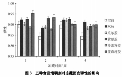 4、五種增粘劑對凍藏?fù){面皮水份情況的危害